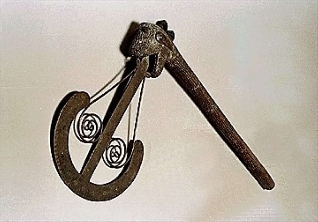Otros objetos rituales incluyen hierros, con la forma típica de objeto sagrado en múltiples lugares, como el siguiente que tiene el mango rayado característico de los fon.