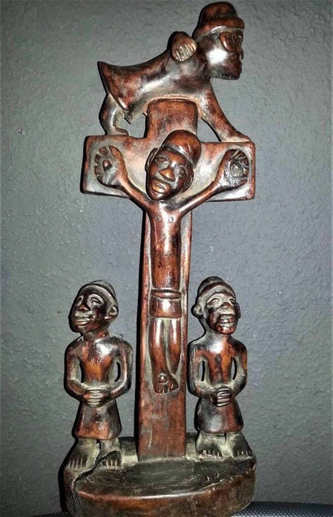 La presión, necesitaban referencias, e influencia de los misioneros hizo también que tanto los tallistas como los herreros, hicieran crucifijos en madera y metal, con una temática europea pero al estilo propio de las gentes kongo.