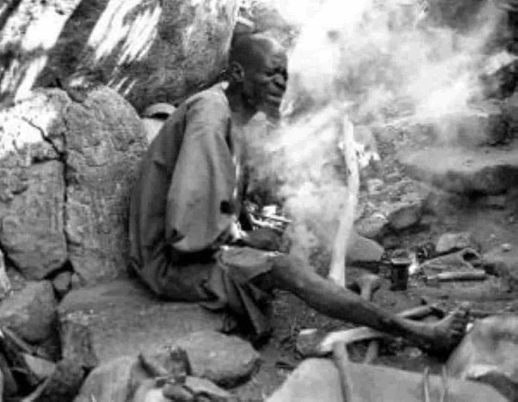Estos ascendieron al cielo, donde Amma les dio las ocho simientes básicas; pero cometieron una falta, y por ello hubieron de descender de nuevo a la tierra. Hicieron el viaje en una gran arca, donde se acomodaron junto a las simientes y a los animales. Retornados a la tierra, los antepasados primordiales se apoderaron de ella combatiendo al zorro y a sus descendientes, unos hombrecillos cabezudos llamados yeban, comenzando a cultivar los campos”.