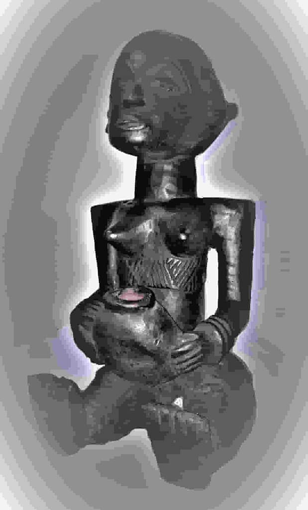 Como ya he dicho, anteriormente a estas figuras se las denominaba Kabila, la mendiga, pues dado que a su alrededor, los lugareños que pasaban, le dejaban artículos como huevos, mijo, cerveza y ocasionalmente una gallina, los occidentales pensaron que era eso, una mendiga. En la actualidad, vencidas las reticencias o eso al menos queremos pensar, parece que esos nombres encubrían otra certeza, en realidad esa pieza era Kitompa Kya Muchi, ‘el tazón de madera revelador’, objeto muy peligroso y solo manipulable por el adivino superior.