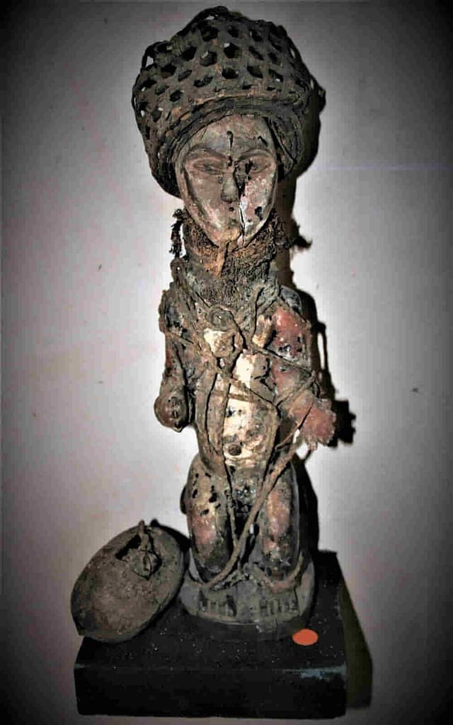 En el este, bajo influencia Fon, suelen estar cargadas de materia sacrificial que suele ser de resina de conífera mezclada con alguna materia orgánica y o restos de carbón, hollín, o arena pulverizada; las más modernas, años treinta y… en adelante, presentan esta misma substancia pero con goma arábiga como aglutinante.