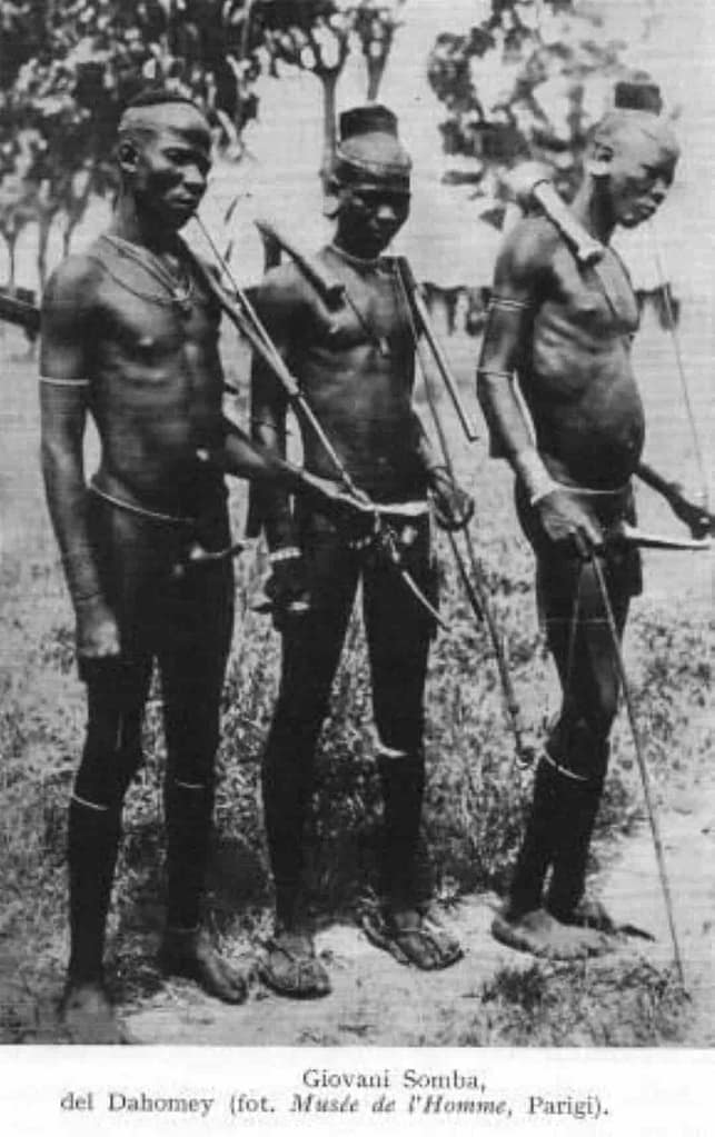 Jóvenes guerreros Batammariba o Somba donde se observa el peculiar protector de su elongado pene.