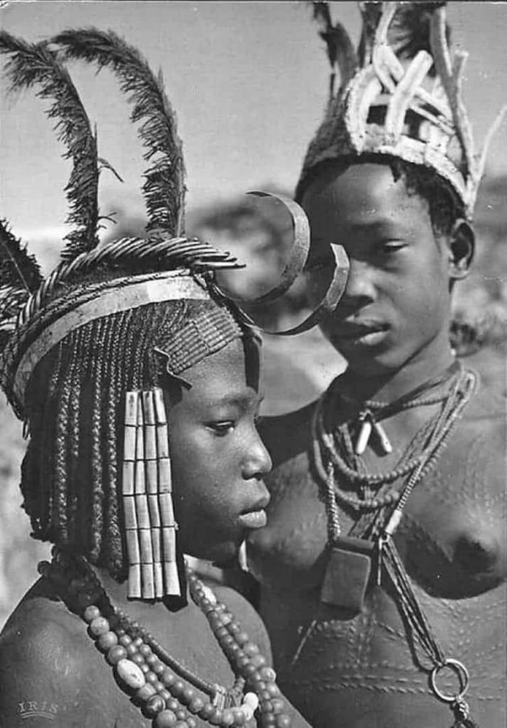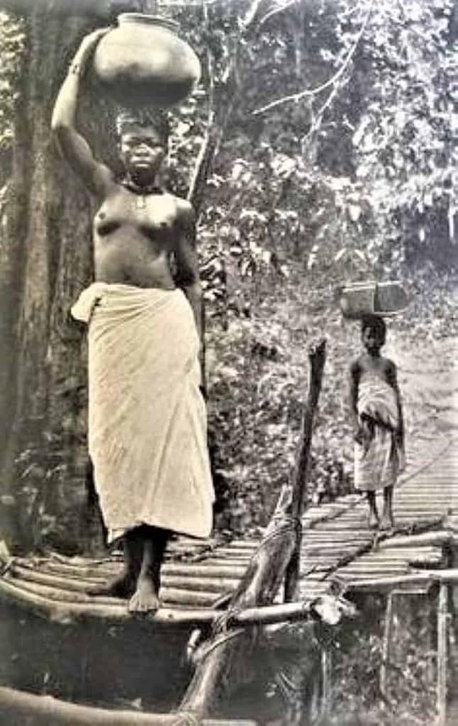 Ámbas muestran un encuadre especial que resalta su ombligo, mostrando así sus deseos de iniciar una familia. Allá por el siglo XV otro pueblo liberiano, los Kru, se hacían una escara vertical en el frontal identificándose como esclavistas; a inicios del siglo XX a todo el que la llevaba se le perseguía llegando a veces a quemarle vivo. Se tapan y lucen con un pareo, típico en la región, al que llaman Sarong.
