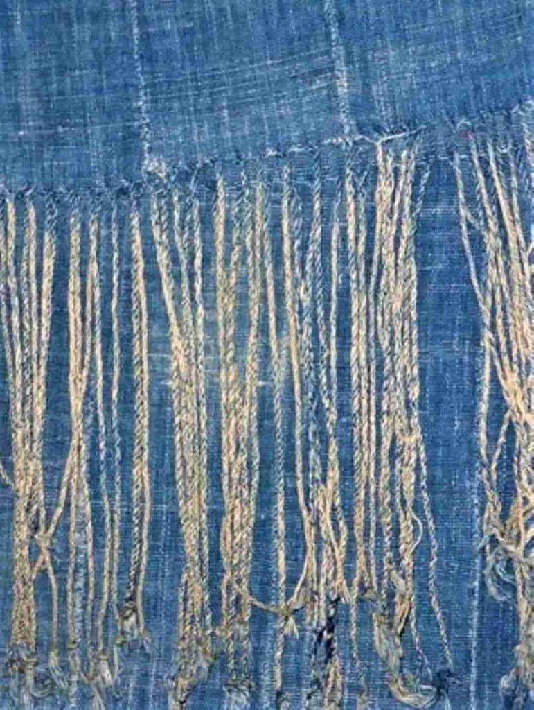 Esta antigua selección de chales de los Mossi de Burkina Faso que hemos visto, con flecos trenzados de hasta 35 cms de largo y con estampados de índigo estrujado, reúnen no solo la calidad del material y trabajo para llevarlos a cabo, sino el conocimiento de algo que había pasado inadvertido si no lo hubieran incluido y enseñado en su colección de textiles Kay and Lori Lee Triplett.