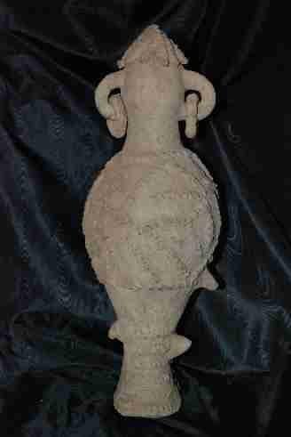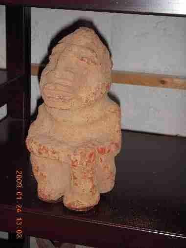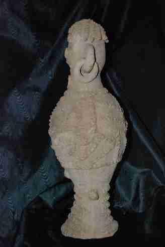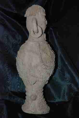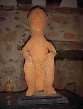 SOKOTO 2.- Este personaje, regio en el porte y en atributos, parece indicarnos claramente su estatus. Como mayoritariamente estas piezas aparecieron en los túmulos de Karauchi. Entre los poblados de Jado y Anka en la región limítrofe con Maru. Nos hace pensar que fueron creadas como símbolo tras la transición, de una futura reencarnación dentro de los ritos fúnebres, pero